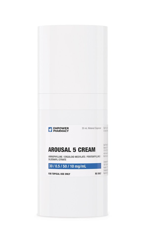 Arousal Cream, which may also go by the name of Scream Cream, is a topical cream that, when applied to the clitoris and/or external genitalia, can increase blood flow to the applied area and has been reported to improve sensitivity and rates of orgasm. Compounded from a mixture of prescription products, Arousal Cream is designed to act locally without substantial absorption into the bloodstream. This transdermal (absorbed through the skin) cream is comprised of up to six different medications and products which include: aminophylline, ergoloid mesylate, L-arginine, pentoxifylline, sildenafil citrate, and testosterone. This synergistic medication draws upon the properties of each ingredient (one bronchodilator, four vasodilators, and the potent sex steroid hormone testosterone) that may provide female libido (sex drive) and sexual stimulation enhancement.
